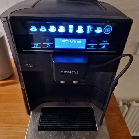 Sælger min Siemens EQ.6 Plus S100 fuldautomatiske kaffemaskine.