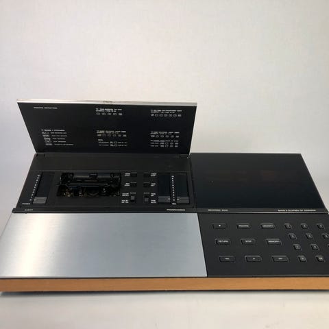 Bang & Olufsen BEOCORD 8004 HX-PRO båndoptager i sort og sølvfarvet design samt med trekant i lyst træ.