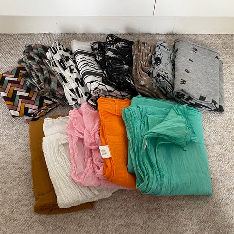 Mangefarvede tørklæder 32 stk - overvejende let bomuldsstof