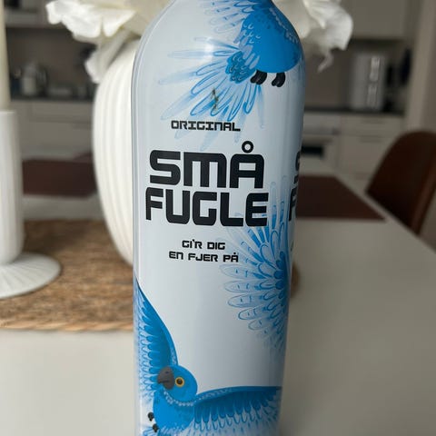 Små Blå Likør i en blå flaske med en volumen på 70 cl. Produktet er en alkoholisk drik med karakteristisk farve og emballage.