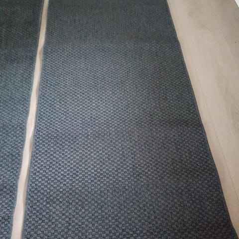 Jeg 4 stykker løber og er rund tæppe som er blevet brugt men i rigtig god stand. Jeg brugt dem i gangen som løber . De er fra røgfri, dyrefri hus og blevet behandlet rent og pænt. Størrelse for løberne er 80*150 cm. For runde tæpper er 130 cm. Samlet koster 400kr
