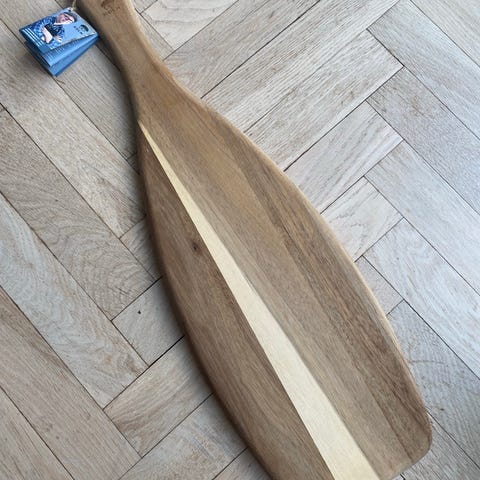 Man kan jo ligeså godt servere mad med lidt stil. Stort serveringsbræt udført i eg, måler 96 cm x 28 cm x 3 cm. Her er tale om et helt nyt produkt. Kan bruges de næste 500 år, hvis man passer på det, da det er lavet af ovntørret egetræ.