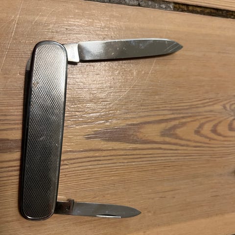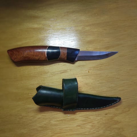 Opinel svampekniv med håndtag af træ og børste til rengøring af svampe.