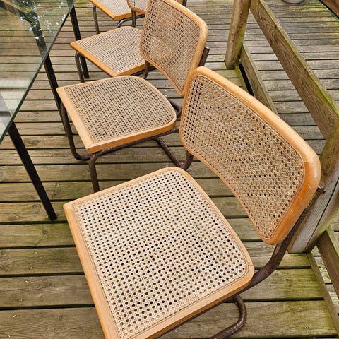 Den ene stol har lidt uregelmæssigheder i sædet hvor fletten er lidt mangelfuld.