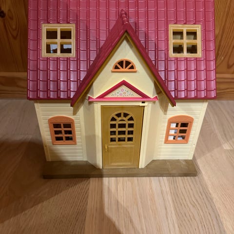 Sylvanian Family hus med elevator. Al inventar og dukker medfølger.