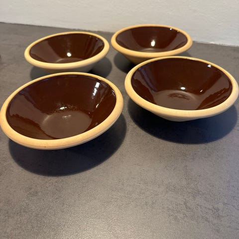 Skålene har farver i grøn, sort, blå og hvid. Materiale: keramik. Designet til brug i køkkenet til servering og opbevaring af mad.