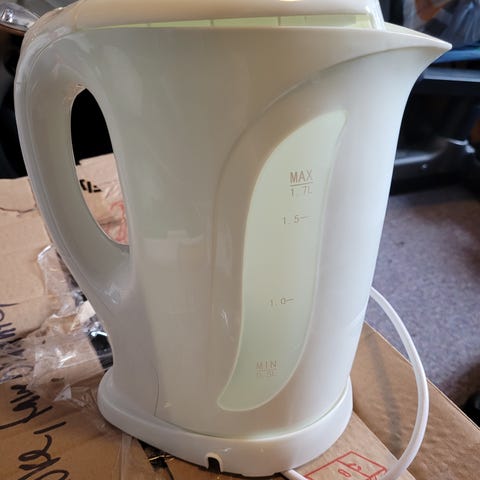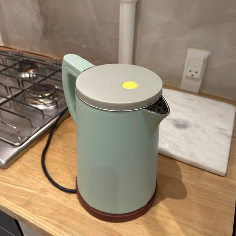 Hay Sowden elkedel med en kapacitet på 1,5 liter. Elkedlen er grå og har en indvendig beholder i rustfrit stål. Den har en aftagelig base med ledning og en håndtag i samme farve som kedlen. Designet inkluderer en hældetud og en knap på toppen af låget.