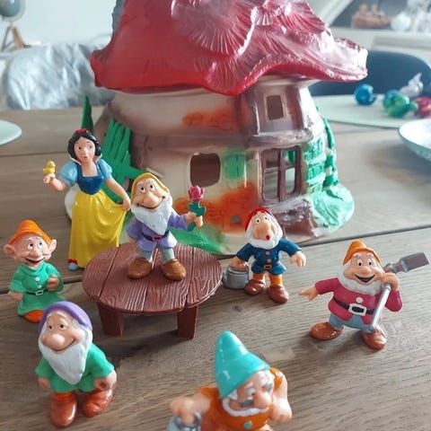 De 7 små dværges hus med 7 senge, og bord med stole, div tilbehør, og de 7 dværge.
