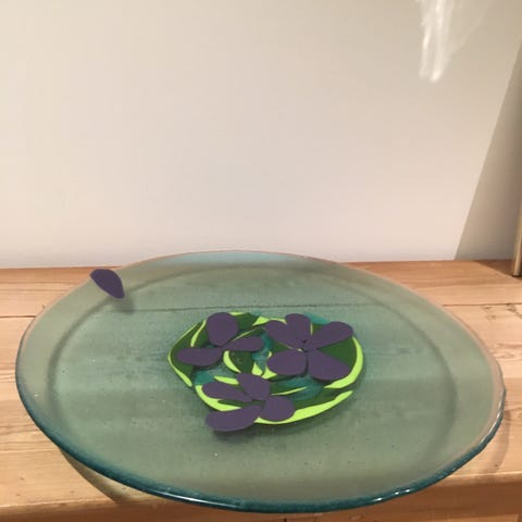 Hjorhöy glasfad med hank i stålwire
