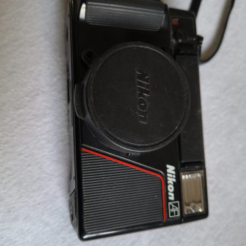 Nikon Analog kamera med 28-80mm zoomobjektiv. Kameraet er designet til analog fotografering og leveres med en taske til opbevaring og transport.÷ AF