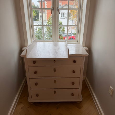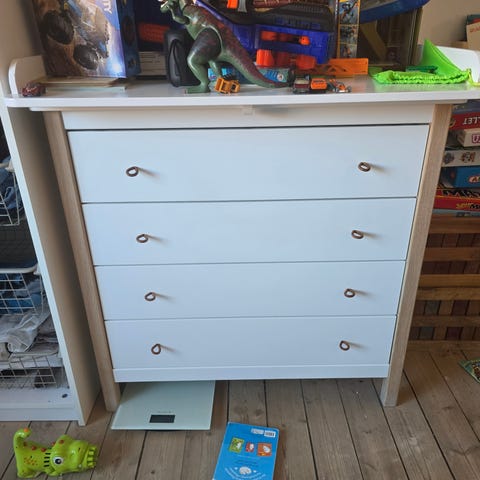 Den klassiske puslekommode, super lækker og stor. Man kan også tilkøbe puslepude og ble-spand. Kommoden står lige nu i kælderen så kan ikke komme til at tage billeder men uploader når vi når ind til den :)