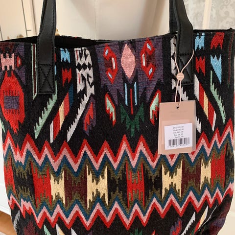 Black handbag from Clock house by C&A, it shows signs of usage but is perfectly clean inside. The bag is made of PU leather with a polyester lining and measures 18 x 5 x 15 cm.
