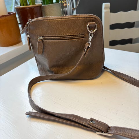 Sort håndtaske fra Clockhouse by C&A. Den viser tegn på brug, men er perfekt ren indvendigt. Tasken er lavet af PU-læder med polyesterforing og måler 18 x 5 x 15 cm.