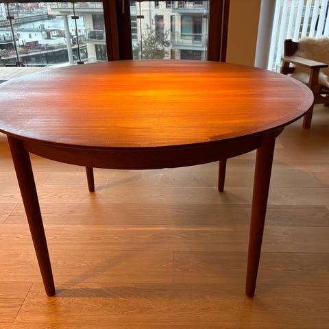 Fremstår med enkelte vandringmærker. Bordet er minimum 30 år gammelt. Mellemlægsplade medfølger.