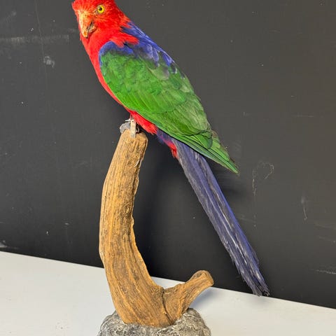 Udstoppet rødvinget parakit fra ældre samling