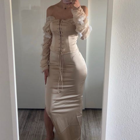 Kjolen er ikke dækket 100% af pailletterne. Der er mindre "huller" rundt omkring. Pailetterne kan også bøje, rundt omkring. Den er foret. Brug den med strømper, bukser - mange muligheder