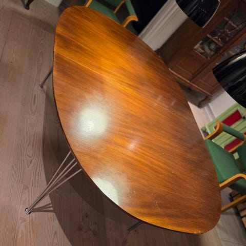 Fantastisk bord som intet fylder og nemt kan stilles til side samtidig med det uden problemer kan borde 12-14 personer til middag/kaffe. Fantastisk og sjældent udbudt bord.