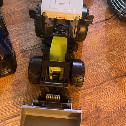 Skovlen på billederne medfølger, men beslagene til at montere den på traktoren mangler.