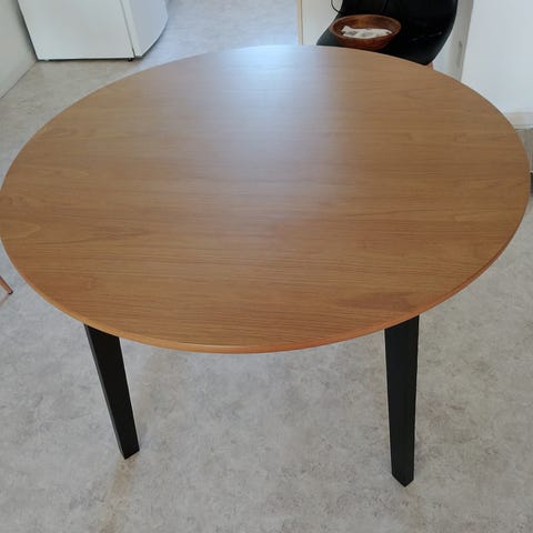 Fint rundt spisebord fra Jysk i god stand. Det har få brugsspor - se billederne. Ø er 105.