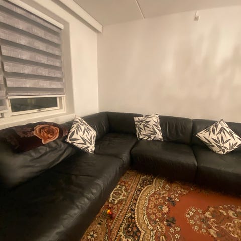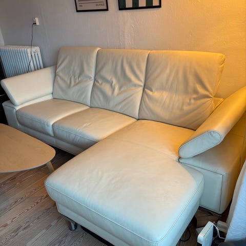 Sort læder chaiselong sofa fra ikke ryger og dyrefrit hjem. Fejler ingenting.