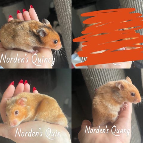 De er født d 24/11 og er klar til at flytte d 28/12 hvor de er 5 uger gamle. Ungerne er opvokset i rolige omgivelser i vores opdræt, de er derfor også vant til at blive håndteret dagligt og man sikre sig derfor en 100% håndvant hamster! De er allerade super nysgerrige og meget glade for snacks!
