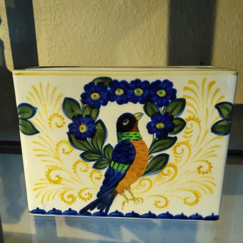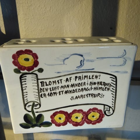 Aluminia blomster kasse med blomster og frugter i rigtig flot stand pris 1200 kr,, kan sendes forsvarligt svare kun på sms eller ring på tlf nr 60661540, se også mine andre annoncer og ved køb af mere finder vi en god pris