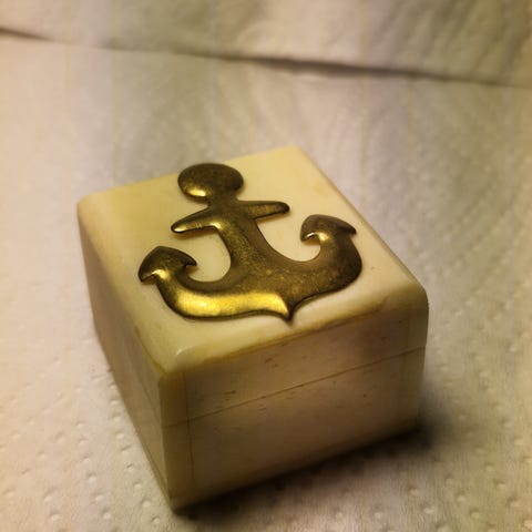 Fin lille oval messing æske med to vokssegl.