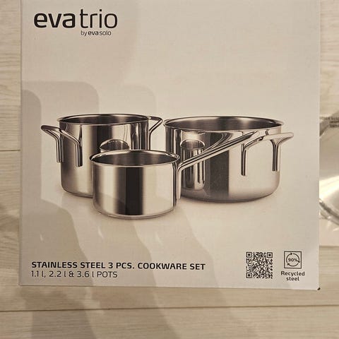 Derudover en mindre kasserolle og en sautérpande, begge uden låg.