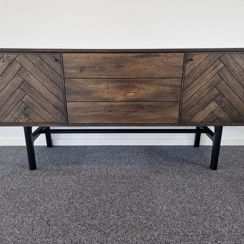 Skænken har let rundede hjørner og elegante skydelåger, passer denne skænk ind i ethvert moderne hjem.