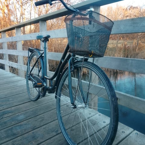 Den har fået nye punkterfri dæk på og cykelkurv .