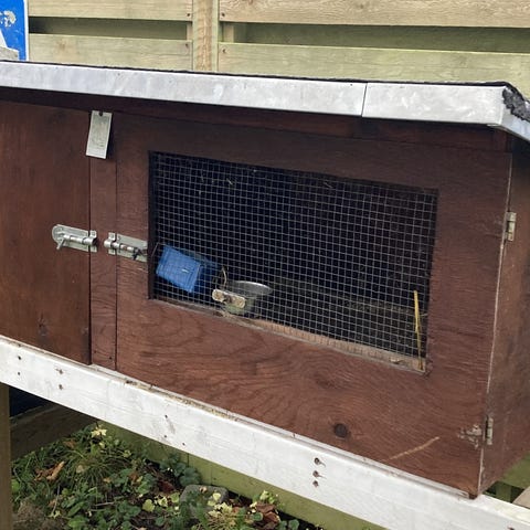 Sød kanin med Udendørs . Kaninburet er desværre ikke i den bedste stand