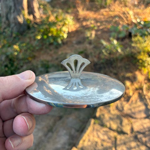 9,5 cm i diameter. Gætter på, at det hører til en krukke fra Saxbo eller Arne Bang.
