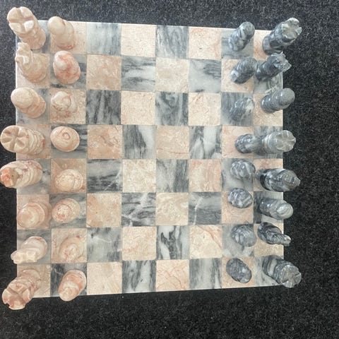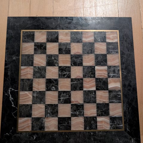 Skakbræt lavet til at stå fremme. Fordi det er marmor er det tungt.