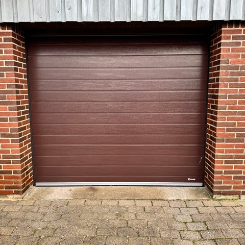 Isoleret Lindab garageport/ledhejseport i brun.