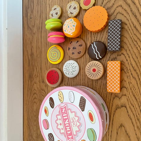 Småkage sæt. Indeholder bageplade, form og 5 småkager, hvor midten kan tages af dem alle.