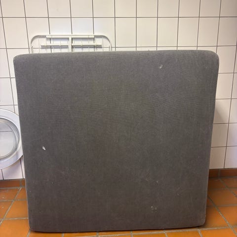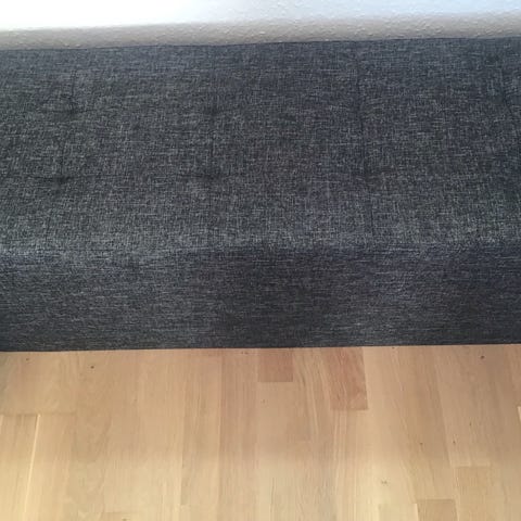 Puf som kan foldes ud til en god soveplads med lamelbund. Grå. Fin stand