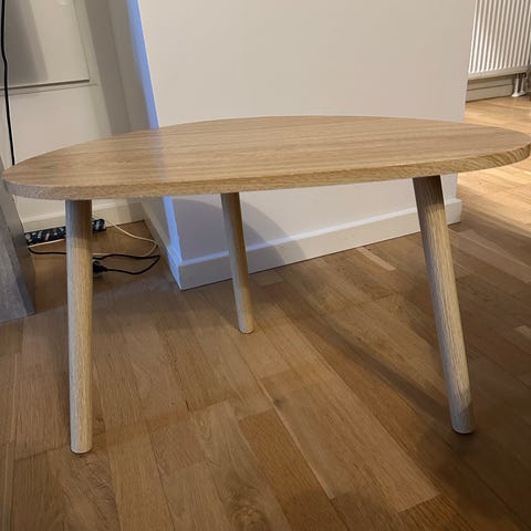 Sidebord eller sofabord i træ. Jeg har malet det blåt, og der er flere mærker, se billeder. Det er stabilt. Kan hentes på Nørrebro for 75, hvis nogen vil give det et skud