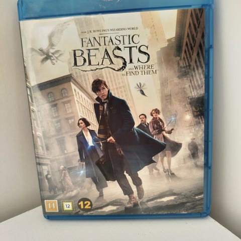 Blu-ray-udgave af filmen 'Fantastic Beasts and Where to Find Them'. Filmens omslag viser hovedkaraktererne og indeholder information om filmens indhold og specifikationer på bagsiden. Produktet er velegnet til visning på Blu-ray-afspillere.