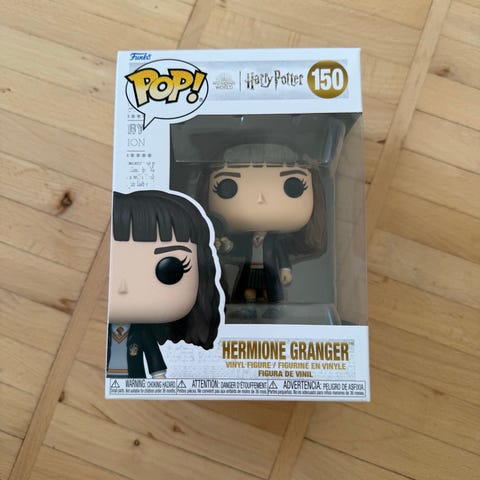Funko Pop Harry Potter Hermione Granger figurine, model number 43, featuring the character Hermione Granger in a pink outfit. Collectible item in original packaging.