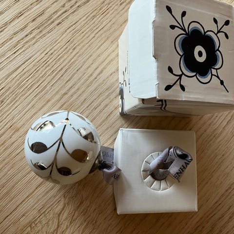Helt ny Royal Copenhagen julekugle. Den var været et del af et sæt, men jeg er kun interesseret i den ene, derfor sælges denne. Desværre ingen original æske, men den pakkes forsvarligt ind hvis den skal sendes😊