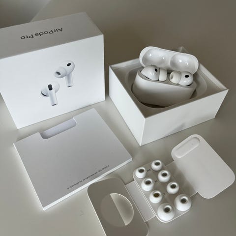 Sælger et sæt Apple AirPods Pro (3. generation), som er modtaget som julegave. De er helt nye, ubrugte og stadig fabriksforseglede, med plomberingen intakt og original emballage.