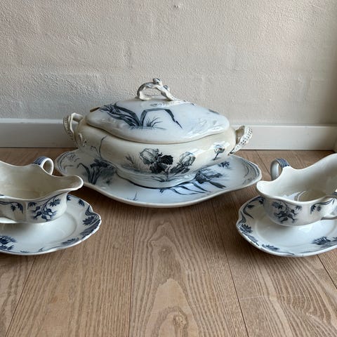 Antik Villeroy & Boch Porcelæn suppeterrin med låg