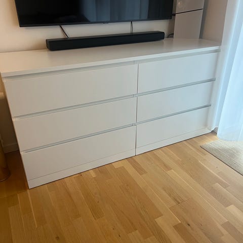 Ikea malm kommode brugt i 1 års tid. Der er et lille hak på bordpladen (se foto 3) men ellers er den som ny.
