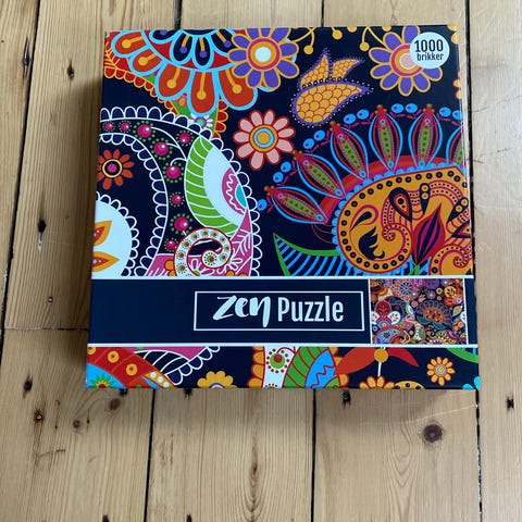 Zen Puzzle puslespil med kaktusmotiv, rund form, farverig illustration af kaktusser og blomster. Egnet til afslappende og koncentrationsfremmende aktiviteter.
