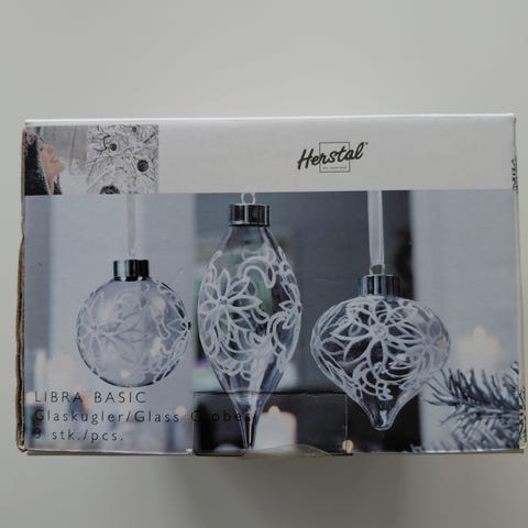 Dette er en Herstal fødselsdagskugle i mundblæst glas med originalt bånd.