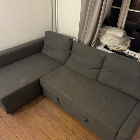 God stor sovesofa. Nem at trække ud. Stoffet fnuldret efter brug. Sofaen fejler ellers ikke noget. Købt maj 2020.