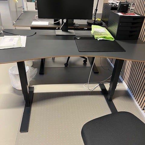 Skrivebord med elektrisk hæve-sænke funktion og træbordplade