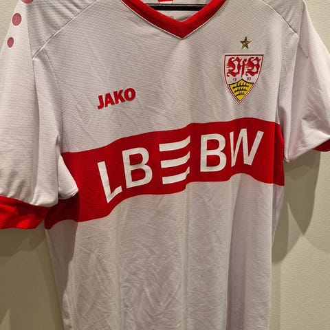 Puma Stuttgart fodboldtrøje i størrelse XL replica version og debitel sponsor er faldet af.