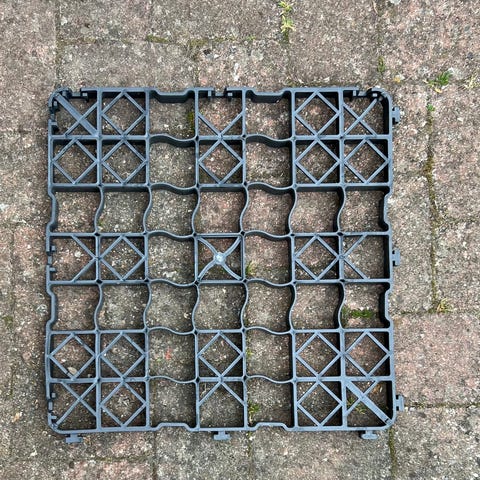 Græsarmeringsblokke leveres i plader a 1,33 m²bestående af 12 stk. blokke. (4*3 stk. a’ 33,33*33,33 cm.) - Jeg sælger 18 plader (ca. 24 m²)