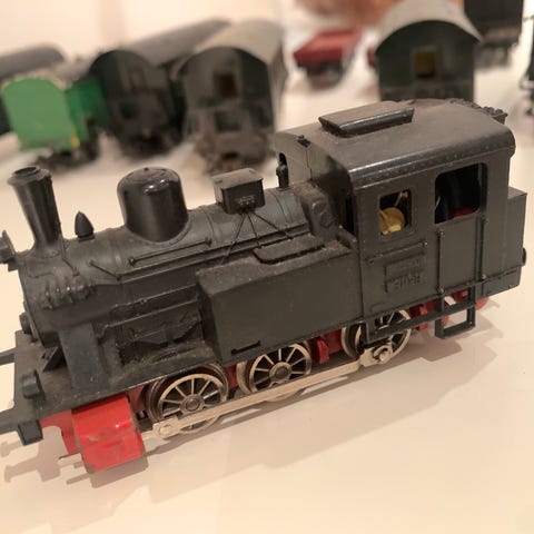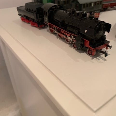 Marklin 89028 (3000) modeltog dampmaskine i sort farve. Detaljeret miniature af en dampdrevet lokomotiv med mekaniske komponenter og hjul. Velegnet til Marklin modeljernbane og samling.